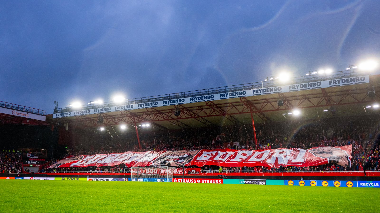 - 20.45 ca. (kampslutt): Brannbutikken i BT-tribunen er åpen i 30 minutter til. Fotballpuben i Frydenbø-tribunen er også åpen.
