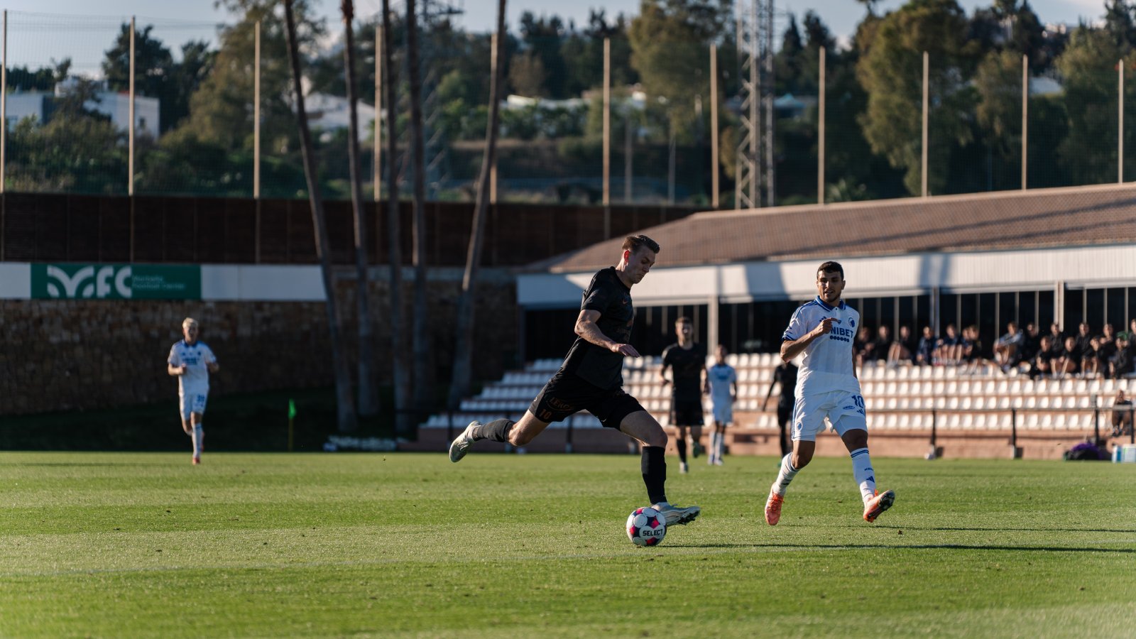 Badet i sol på den spanske solkysten ble kampen mellom Brann og FC København sparket i gang foran et par hundre tilskuere.