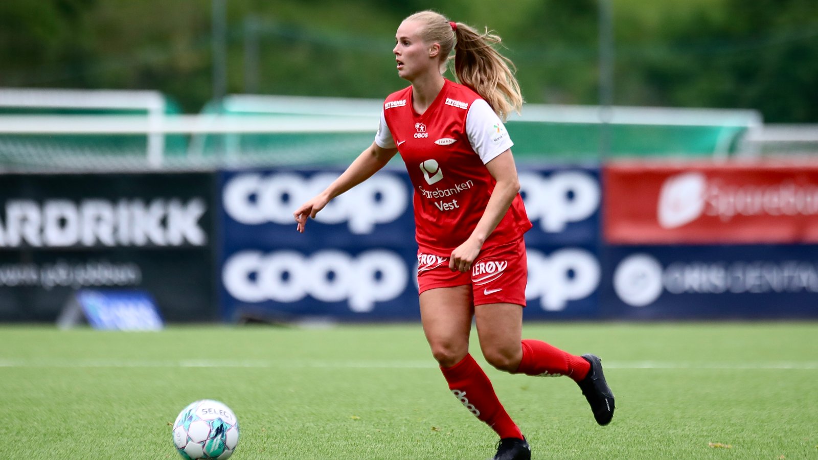 Pang! Kampen var ikke en gang ett minutt gammel før Nora Eide Lie banket ballen bort i hjørnet fra atten meter. En fin scoring, og dermed ledet Brann 1–0.