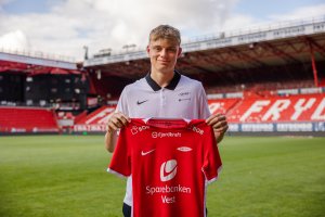 Rasmus Holten (18) har skrevet sin første A-lagskontrakt med Brann, og avtalen gjelder ut 2026. Samtidig lånes han ut til Mjøndalen for å få verdifull erfaring fra spill i OBOS-ligaen.